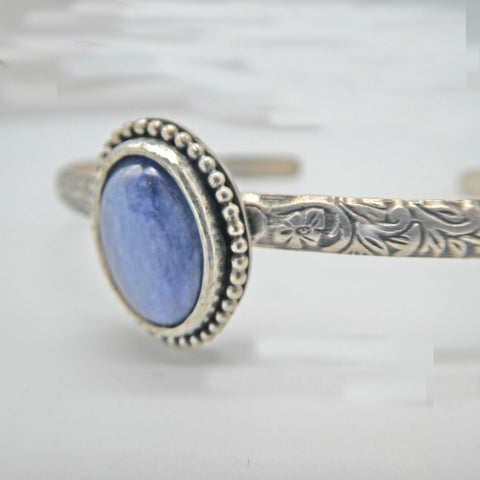 A pretty oval Kyanite stone surrounded by sterling silver!