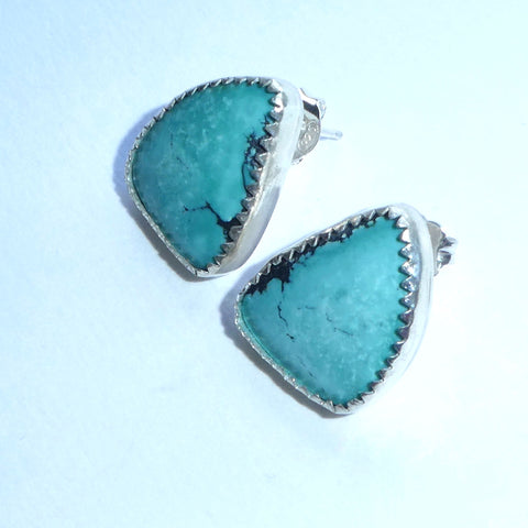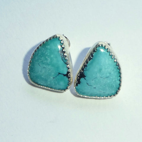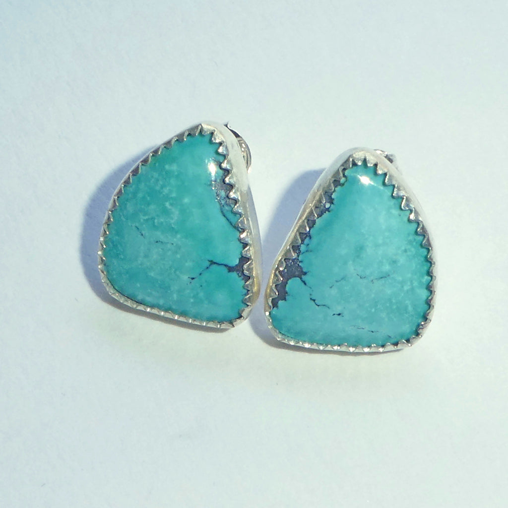 Beautiful green opal stones from Kazecstan are the focal point of these post earrings. They are one of a kind, handcrafted in solid sterling silver.