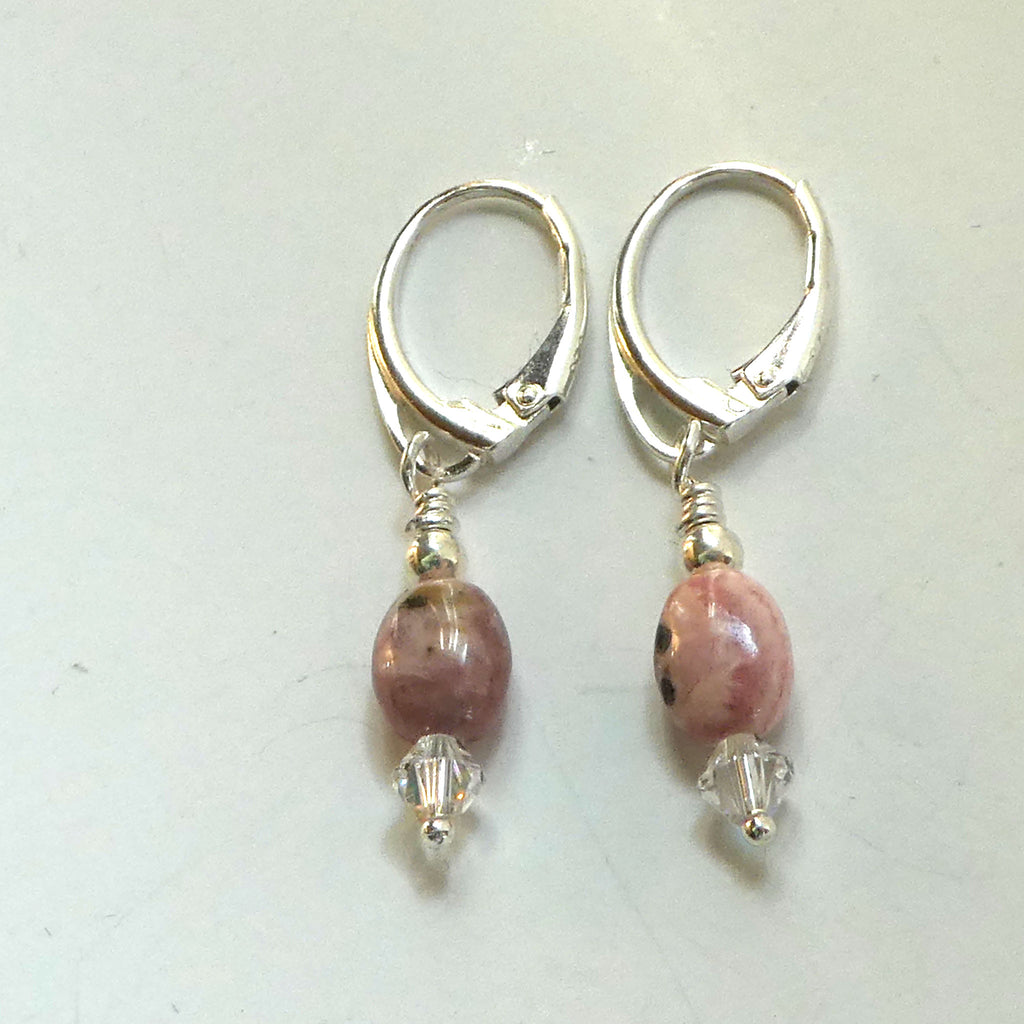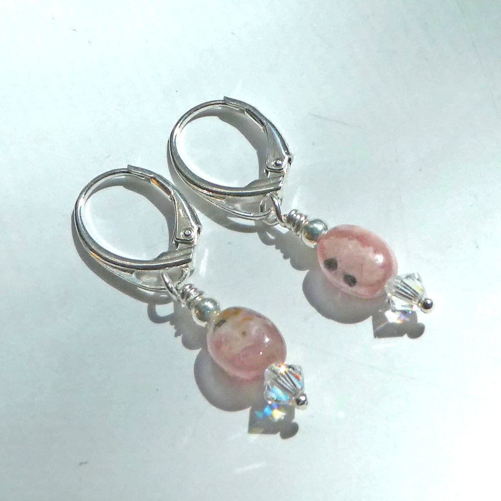 Pink is hot again in 2022! These are cute little dangle earrings with a lever back ear wire and sterling silver for accent.