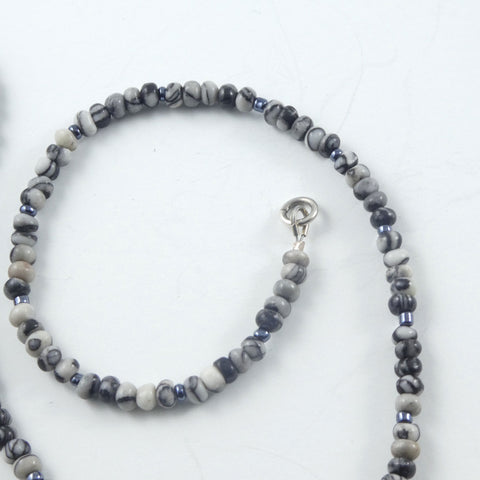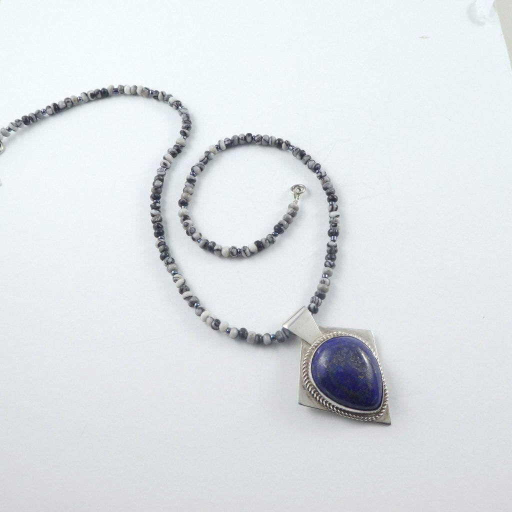 The pendant includes a 16 inch strand of Picasso Jasper beads, and a sterling silver clasp.