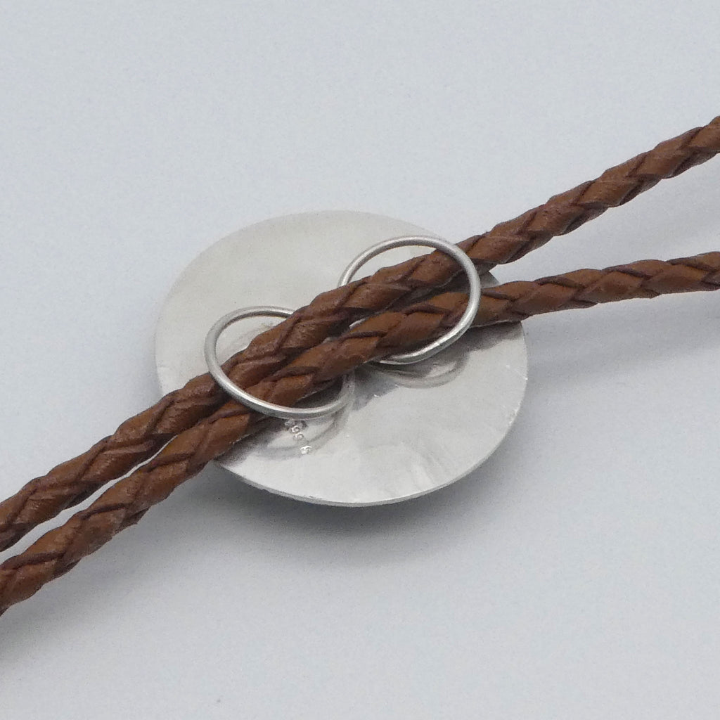 The back is designed with two loops to hold the leather, also made from solid sterling silver.