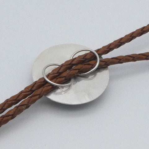 This is a beautiful solid sterling handcrafted bolo on a pecan genuine leather bolo, with sterling silver tips.