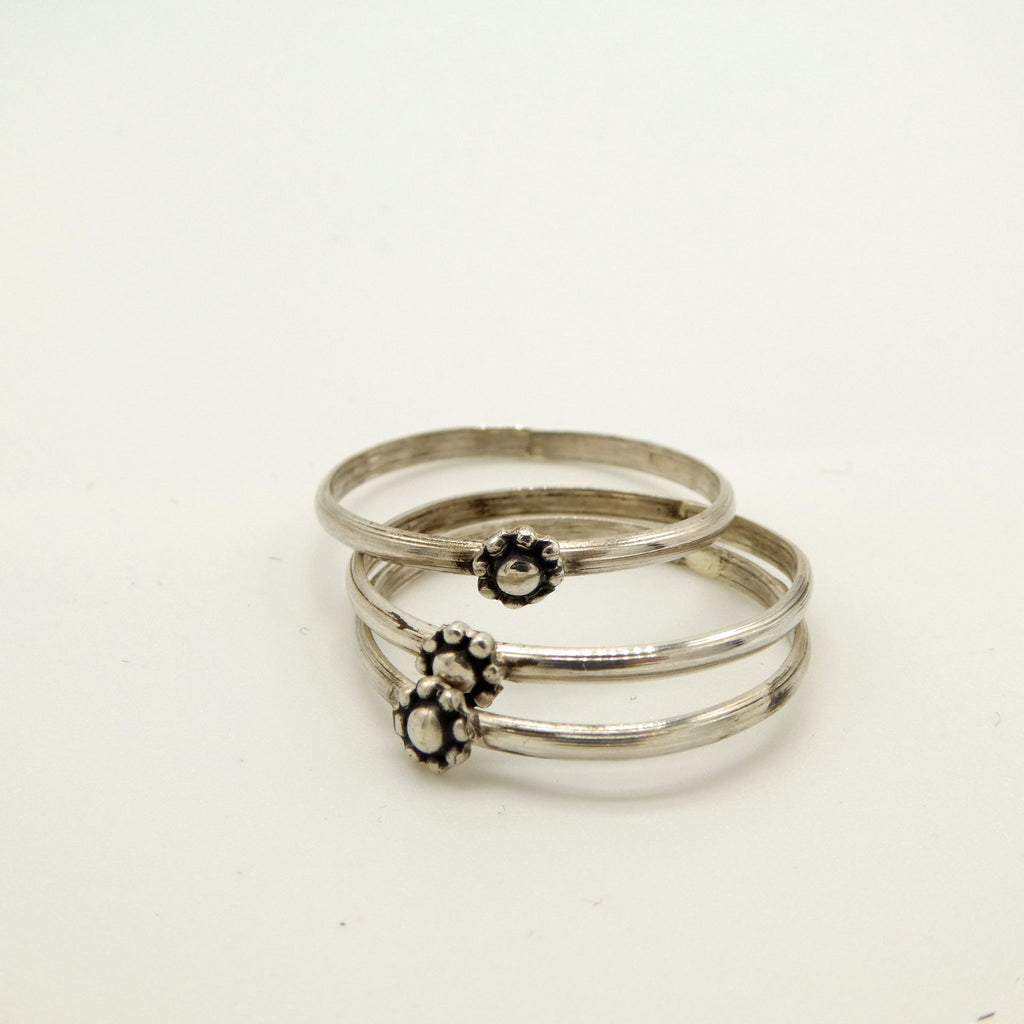 The rings are solid sterling silver, dainty, with a tiny daisy.