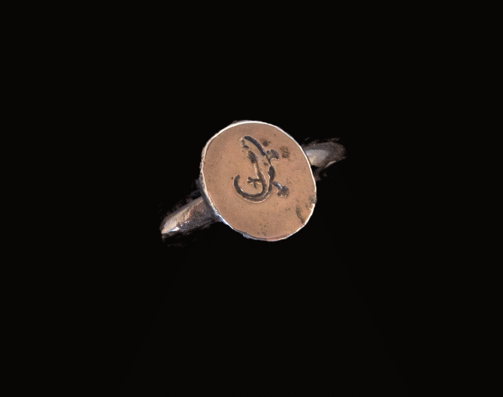 It is size 7.5, and made of solid sterling silver. The pad with the lizard is approximately 1/2 inch in diameter.